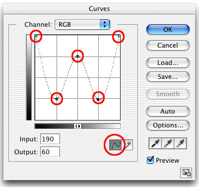 Go to Image>Adjustments>Curves, Ctrl+M (PC) or Cmd+M (Mac), and make your graph look like this by clicking and dragging. |